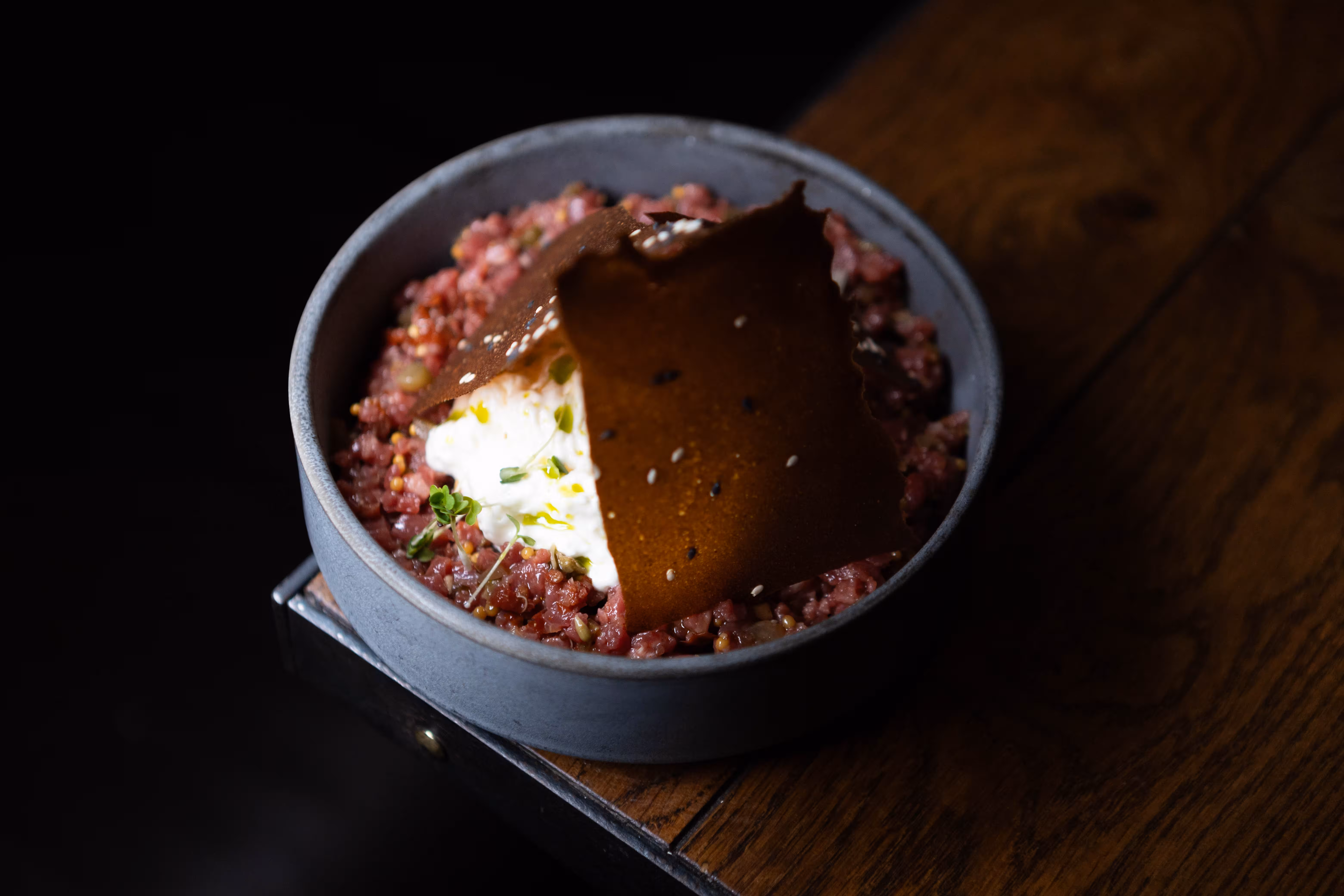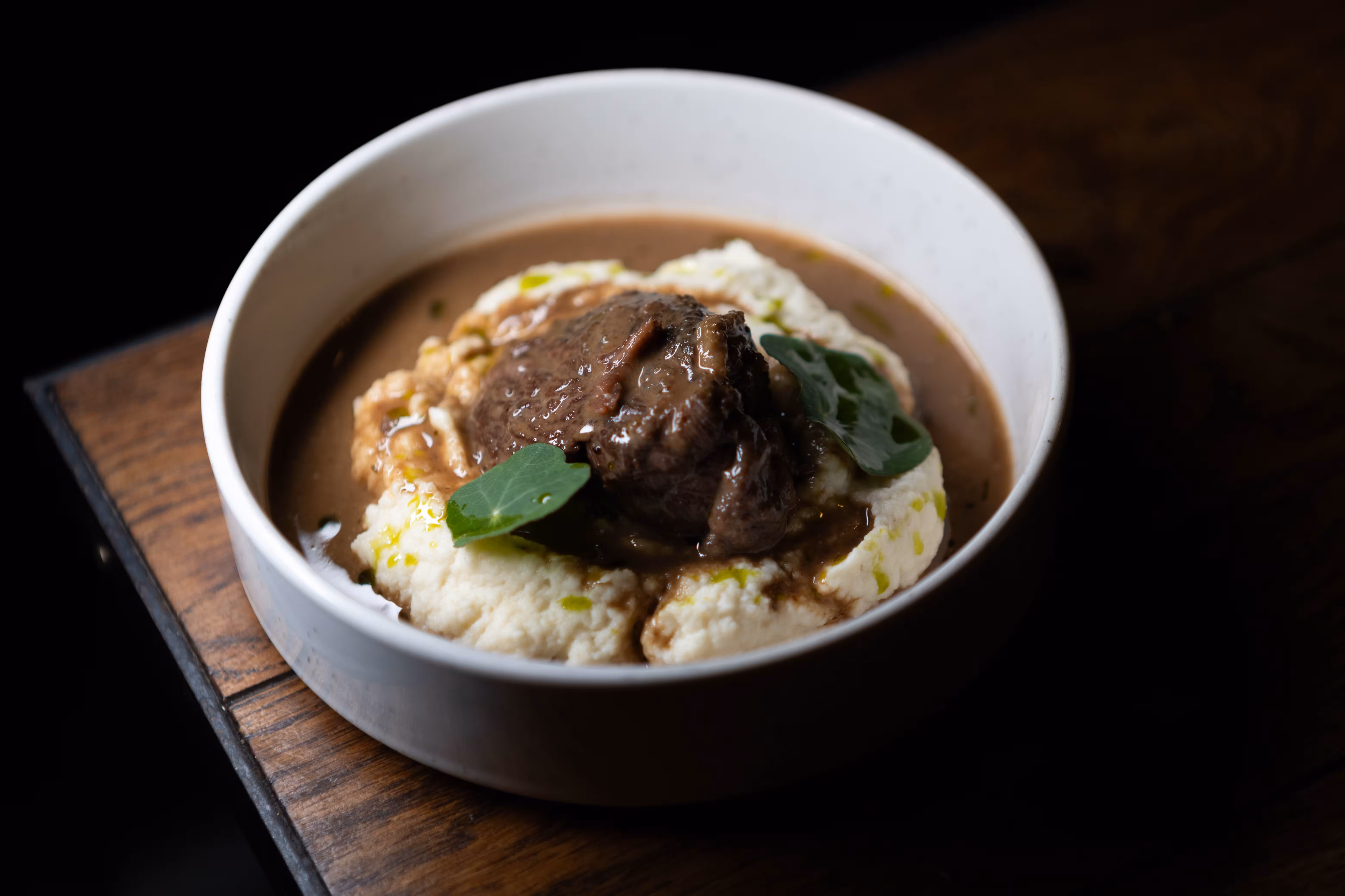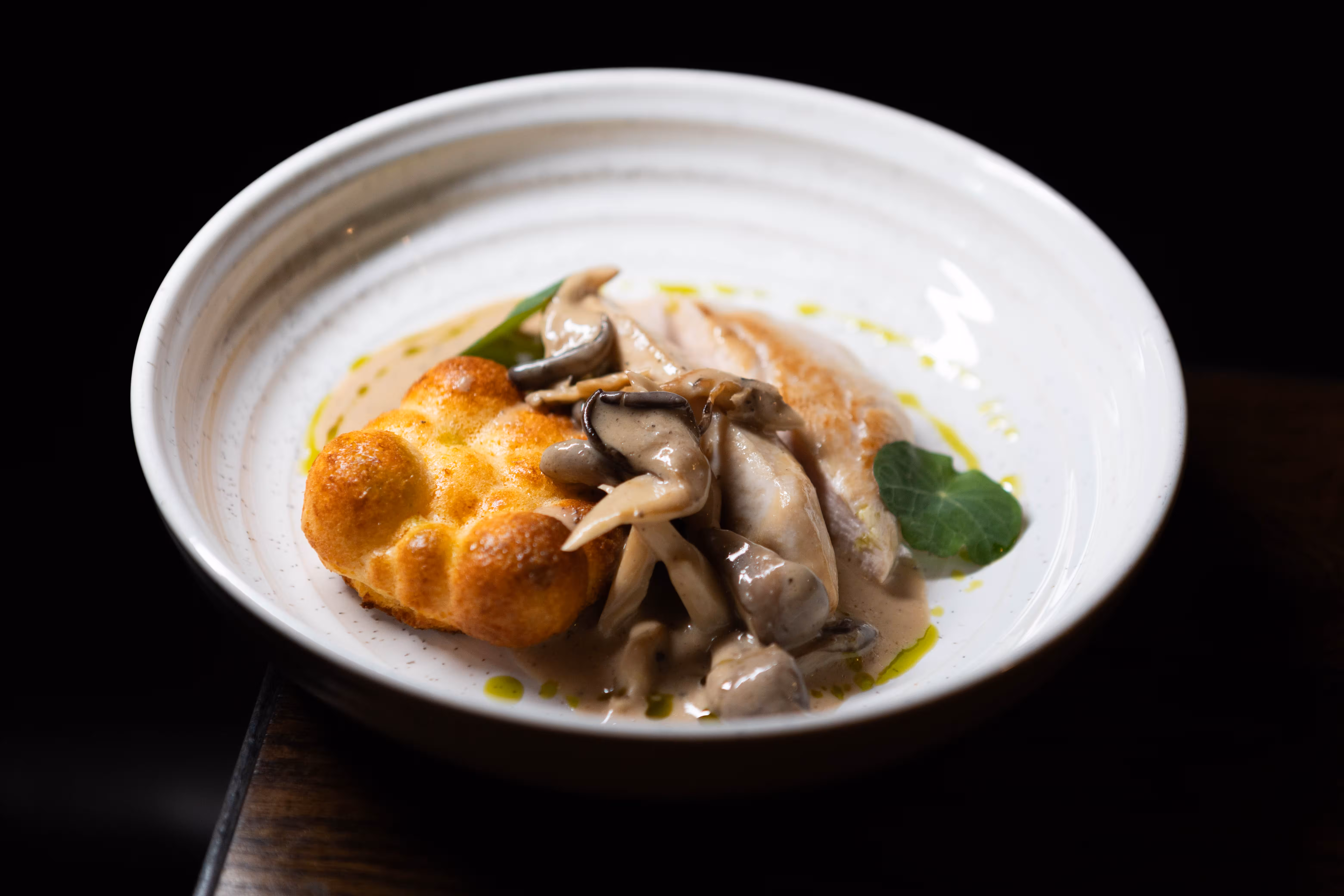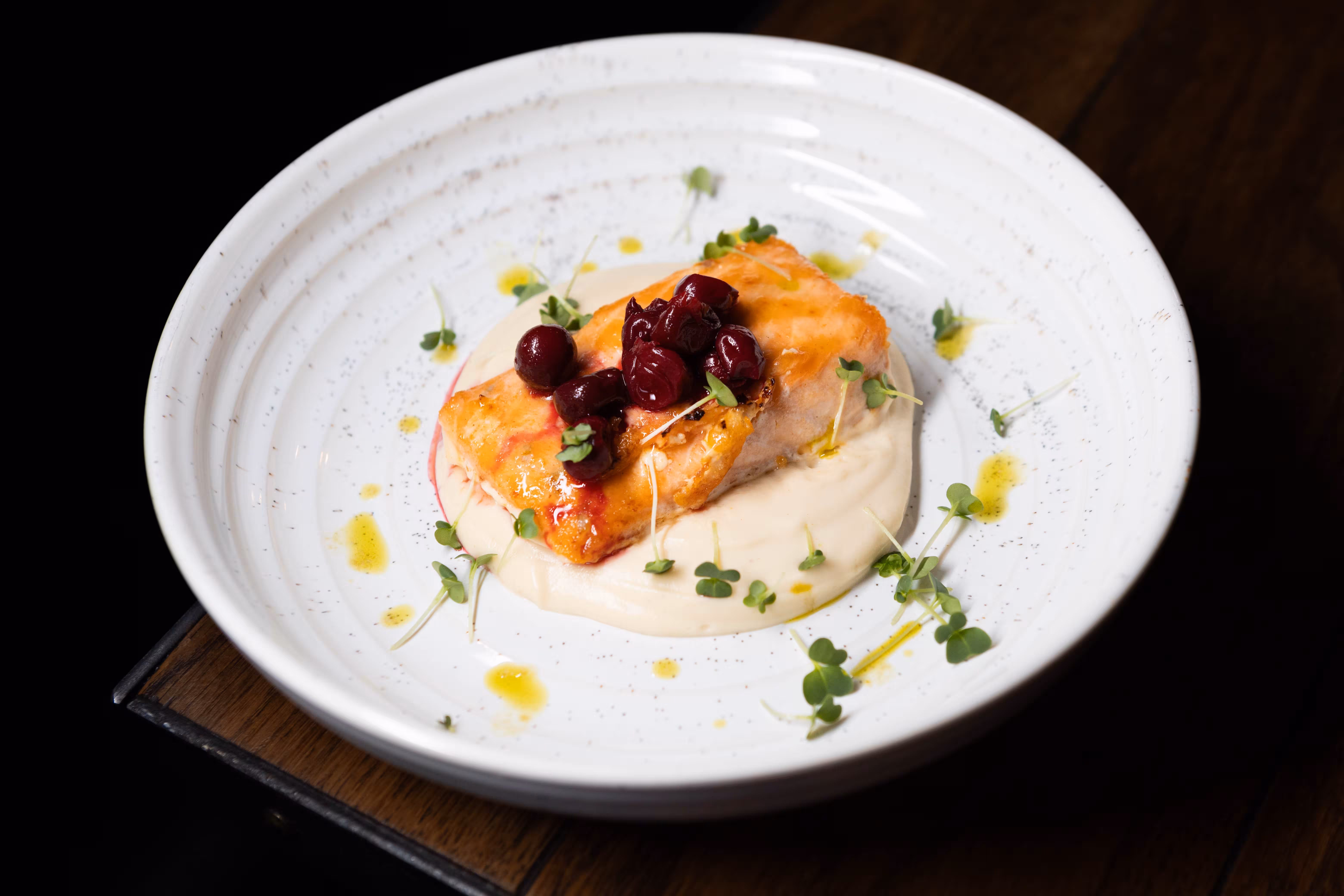 растомленная в травах с ягодами можжевельника, нежным кремом из сельдерея под сливочно-мясным соусом