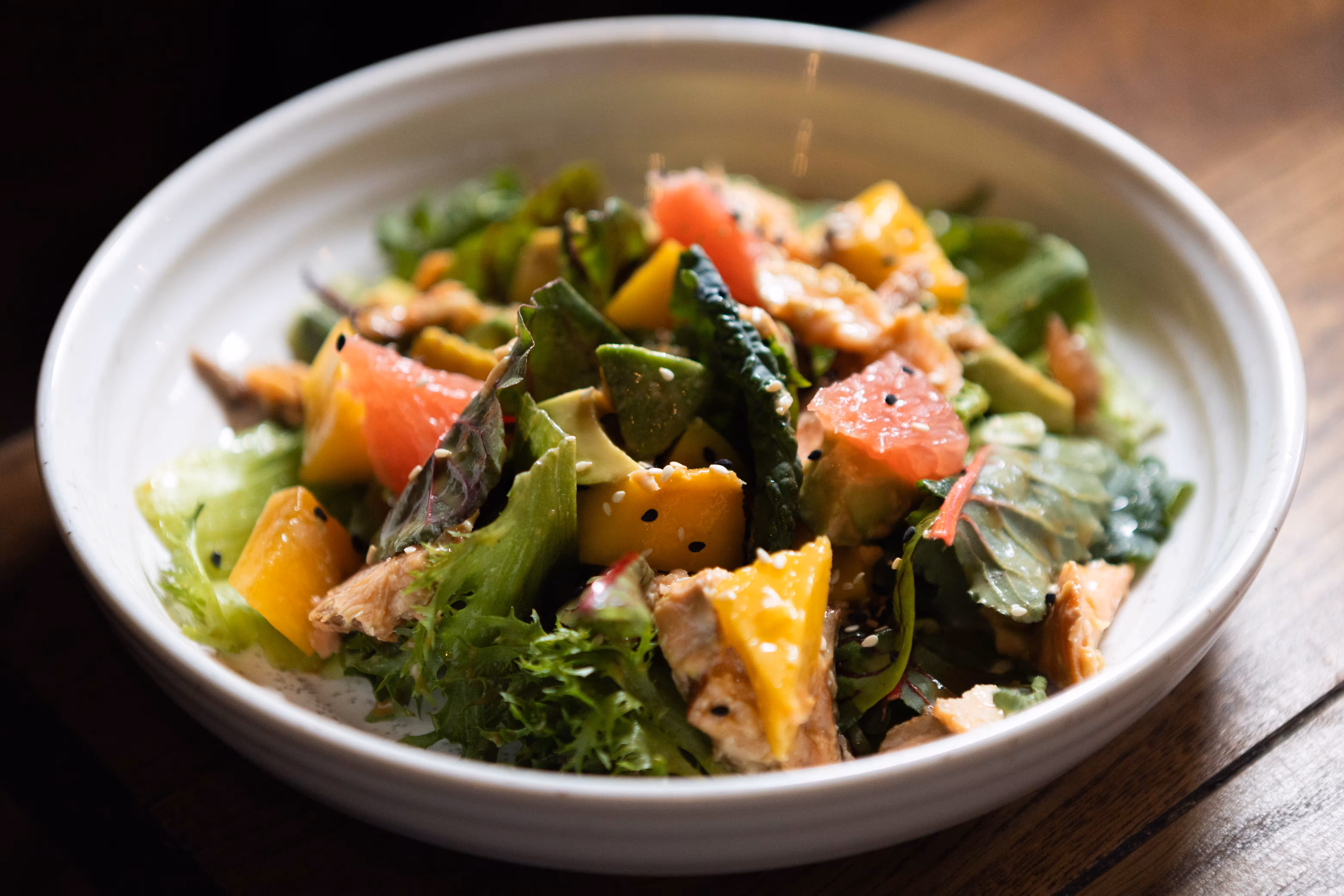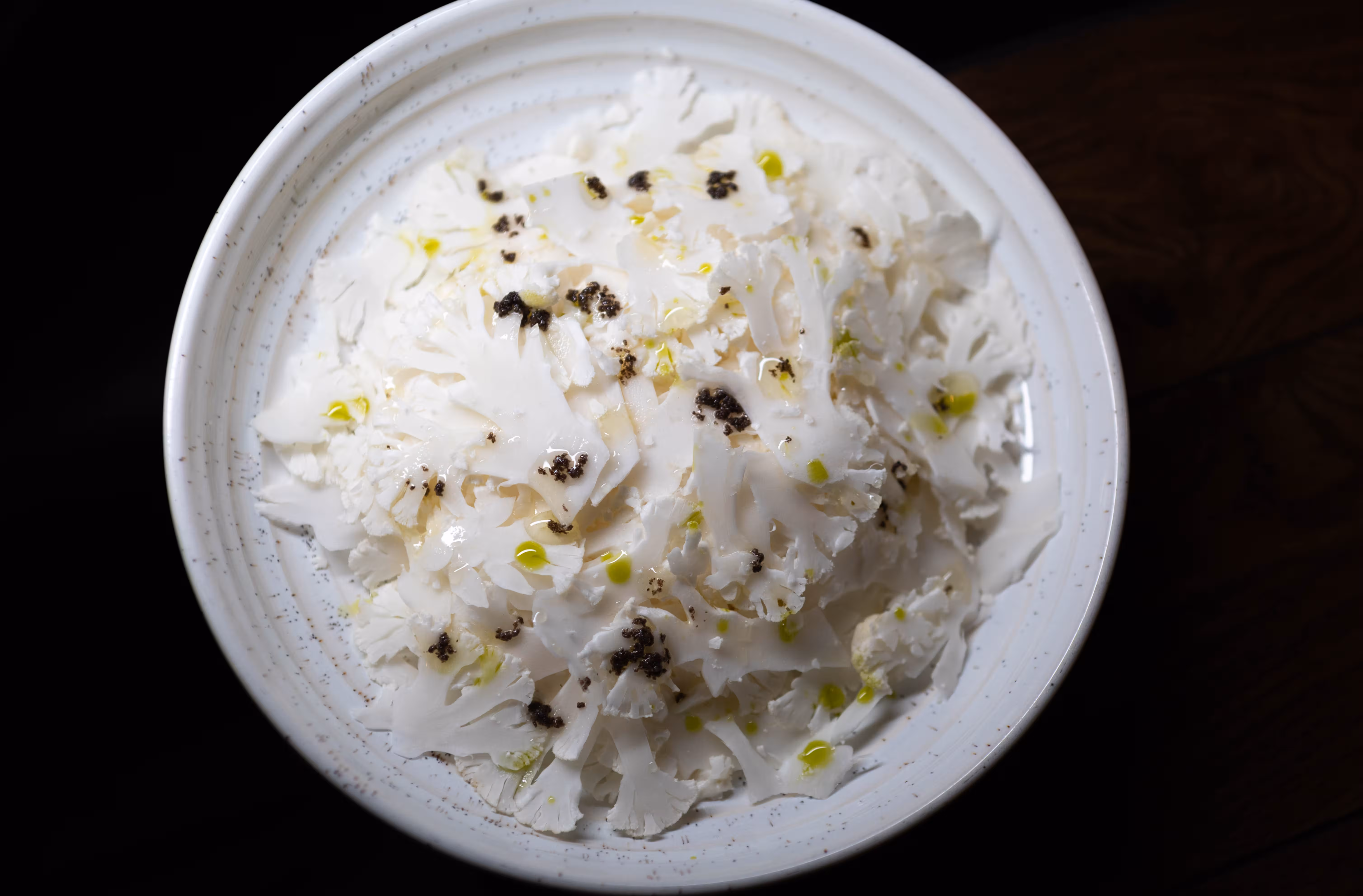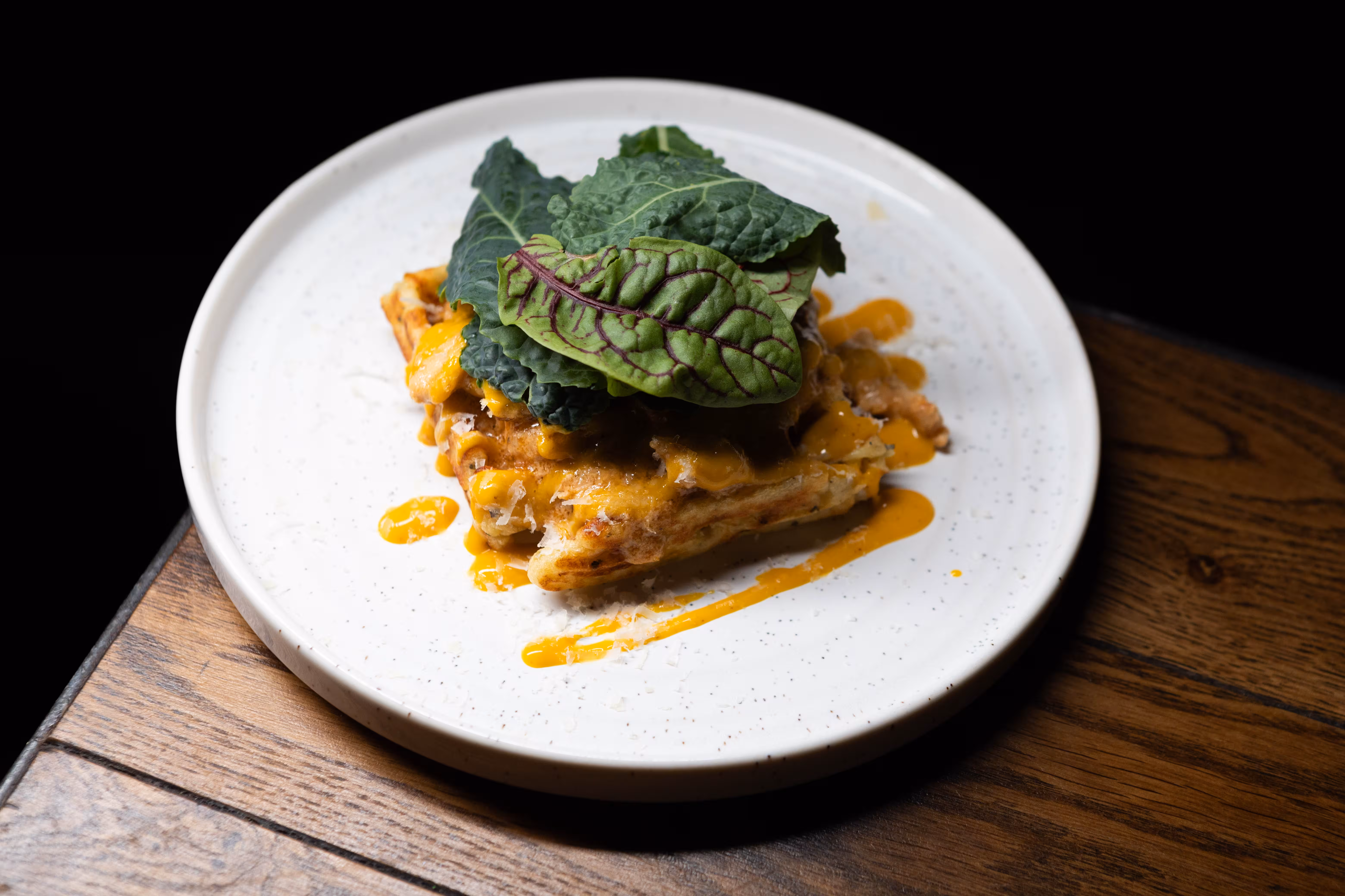 С кунжутом кимчи, пармезаном, кремом из запеченной тыквы, шалфея и яблок (можно добавить курочку за 250 ₽ или креветки за 300 ₽)
