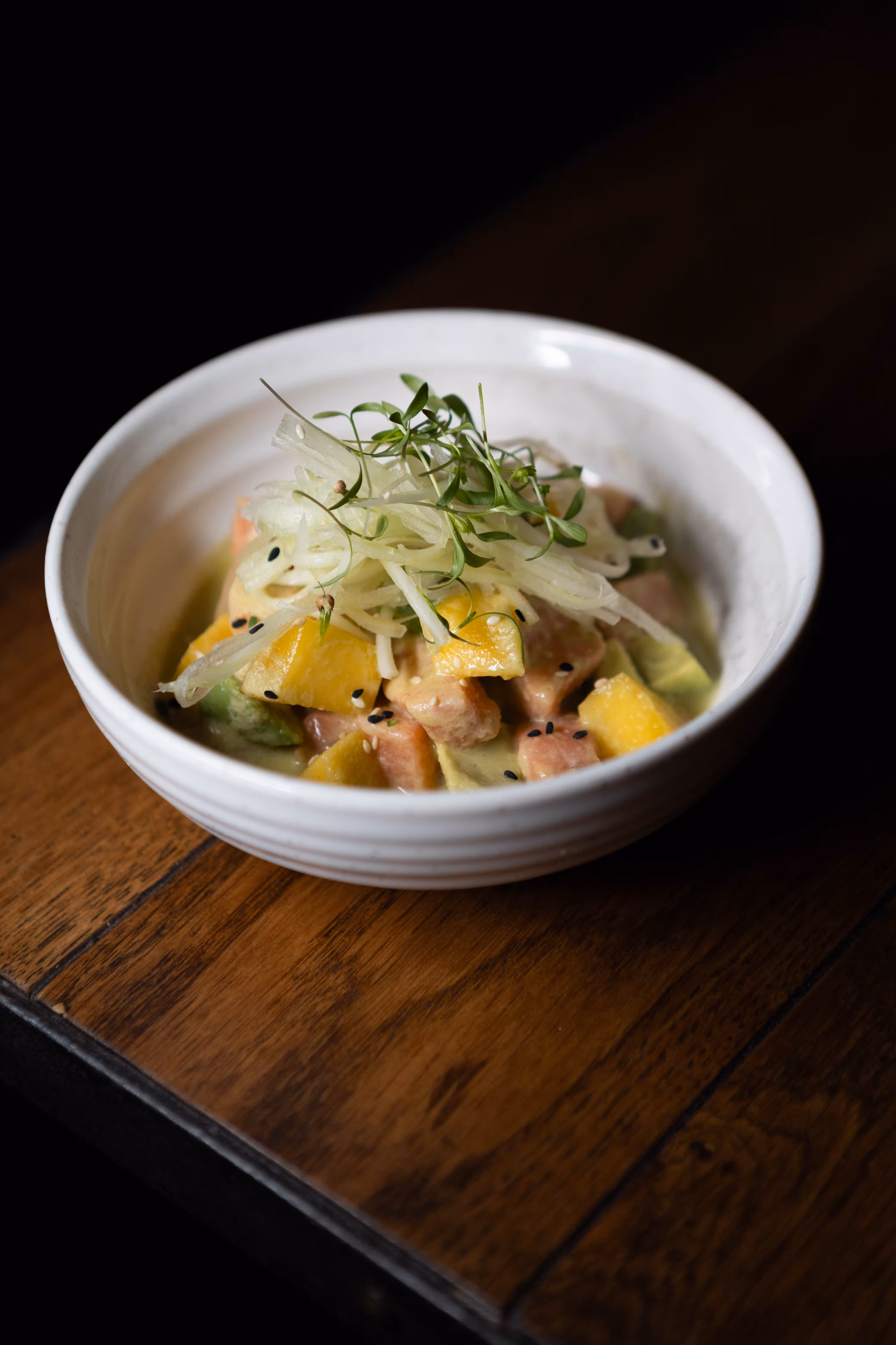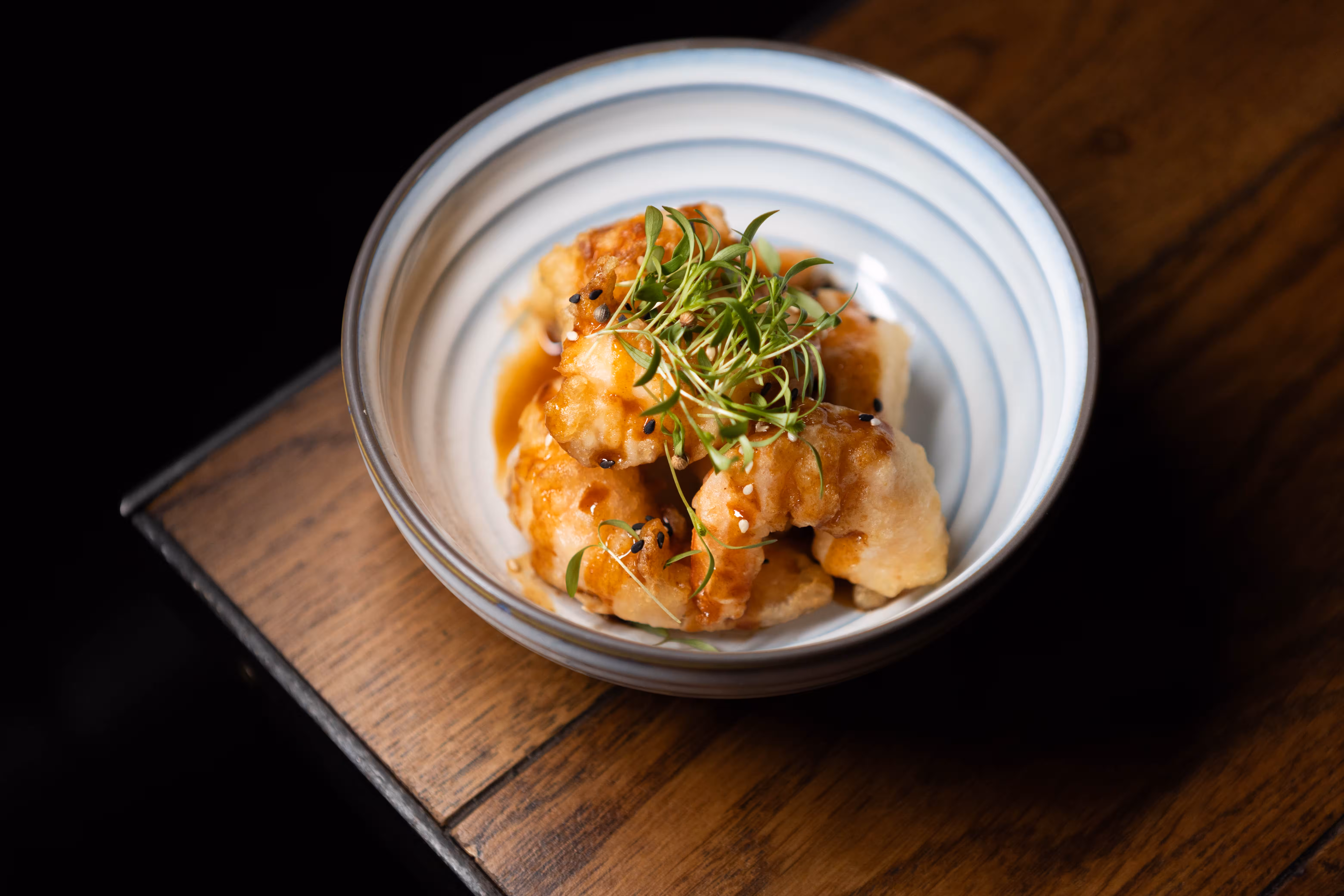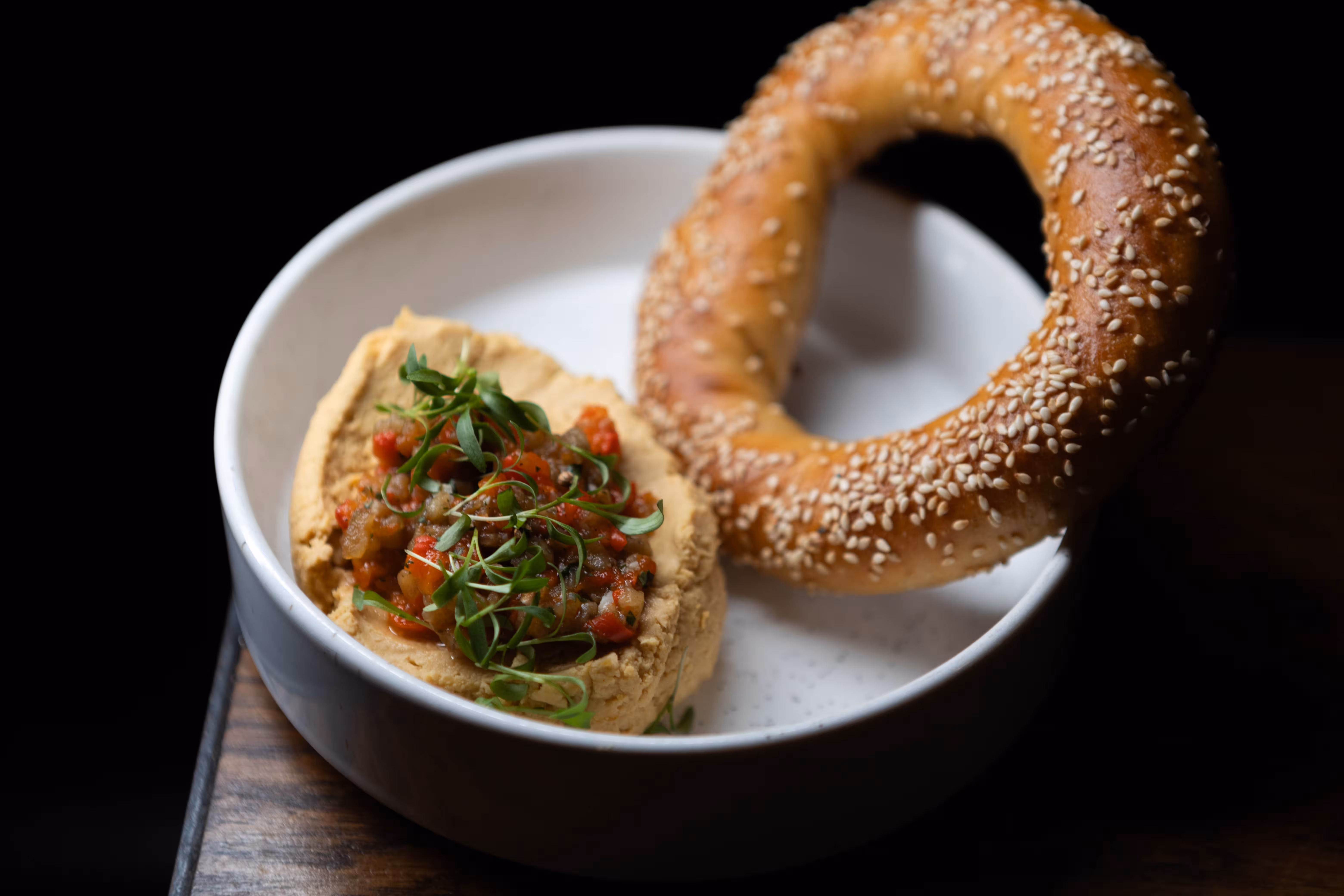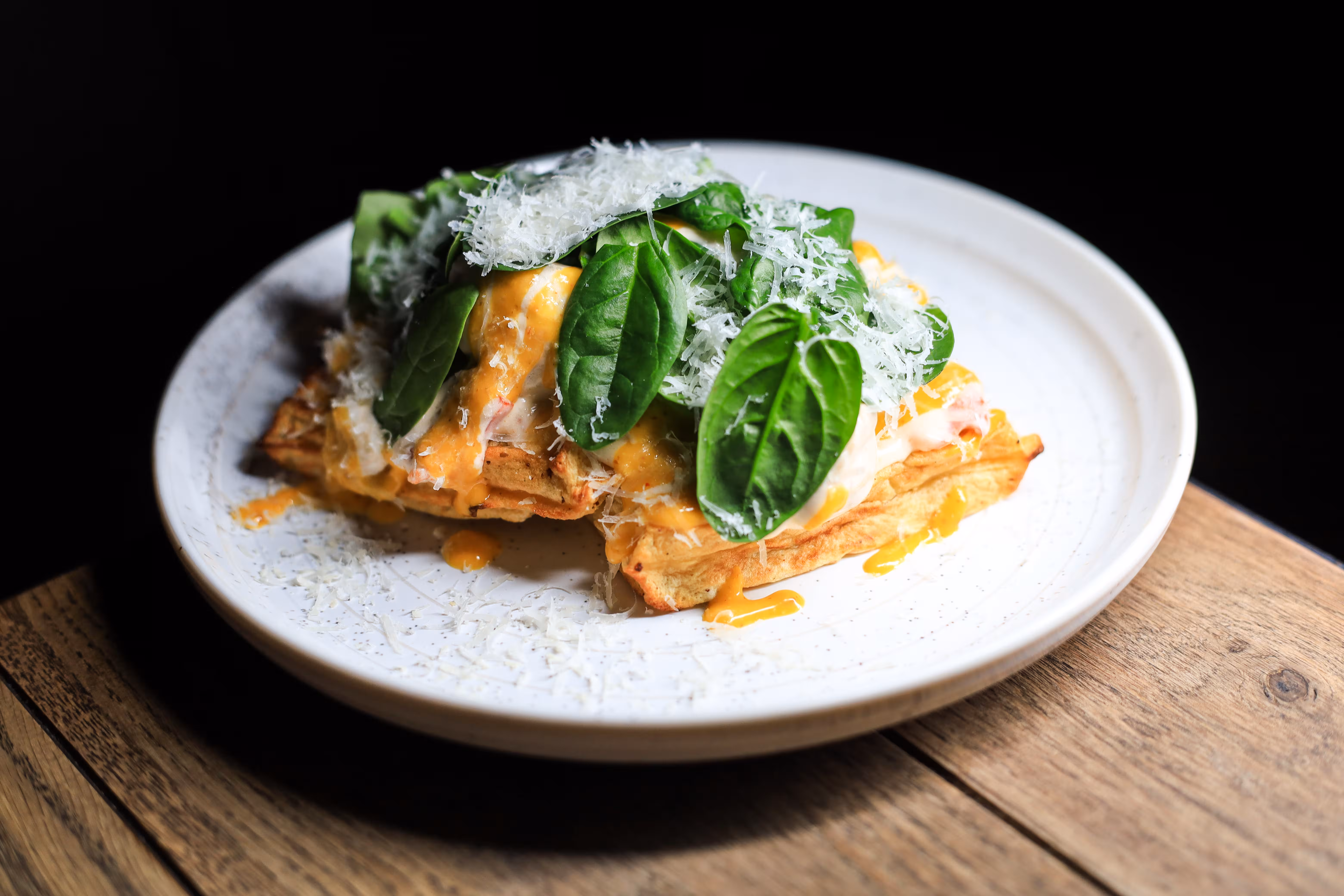 С кунжутом кимчи, пармезаном, кремом из запеченной тыквы, шалфея и яблок (можно добавить курочку за 250 ₽ или креветки за 300 ₽)